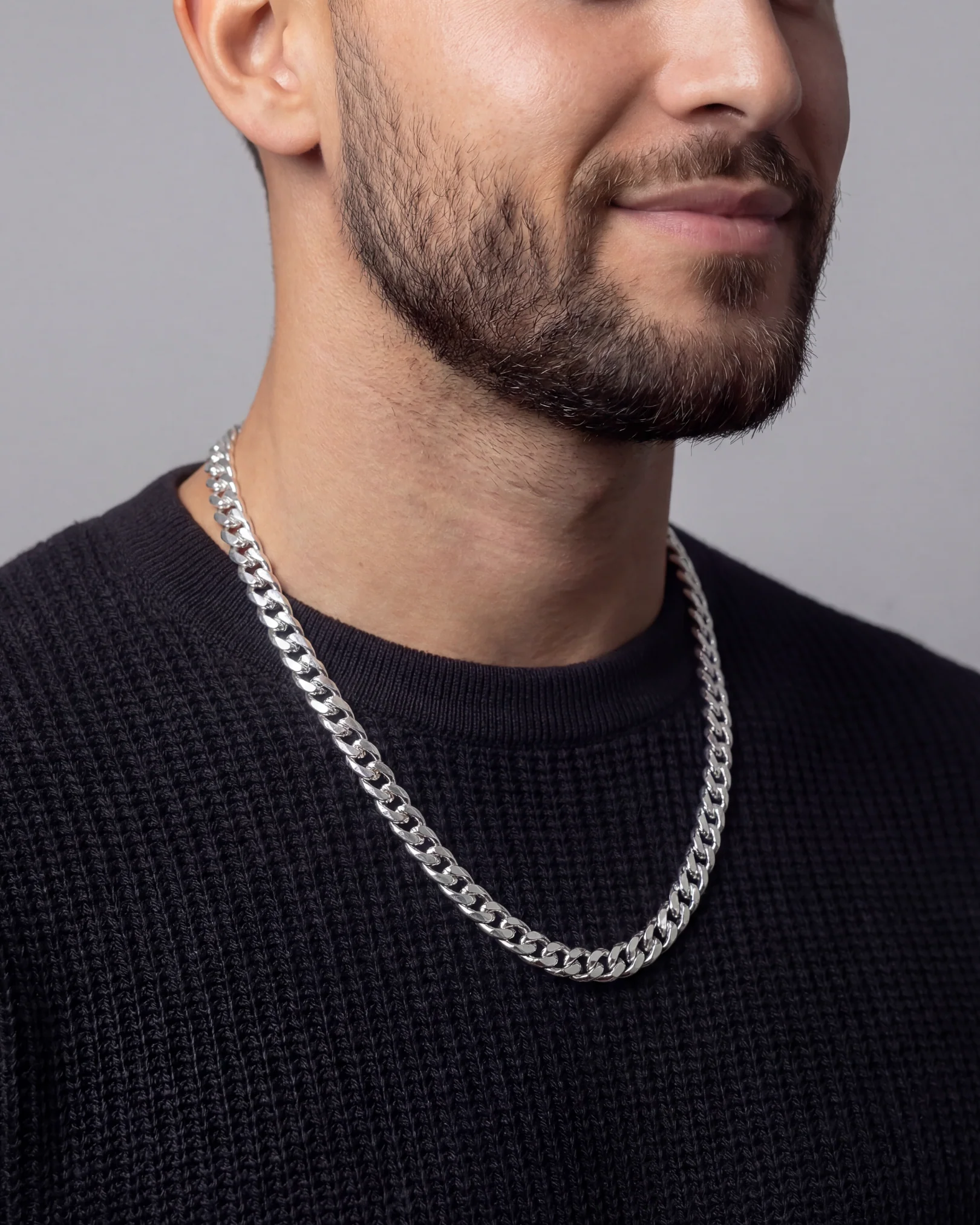 Same timeless look, colder finish. The silver Cuban is your everyday essential — strong enough to stand alone, clean enough to stack. You could wear it to brunch or a bar fight. Up to you.