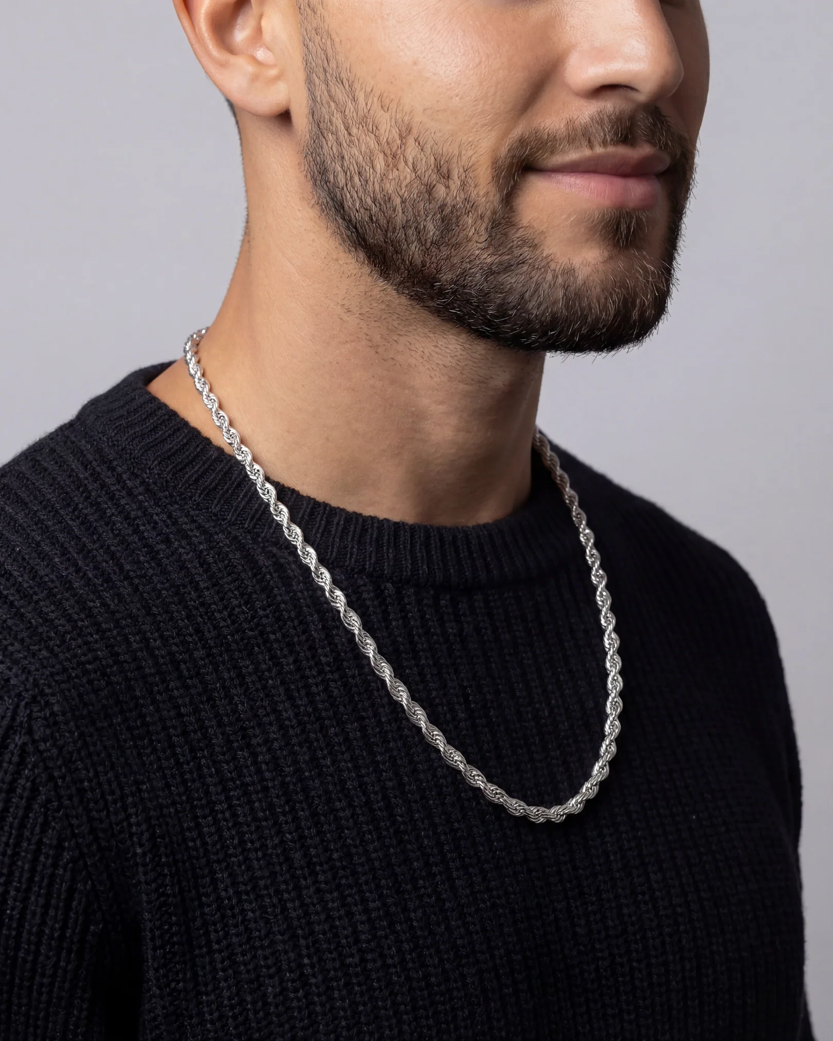 Looks chill, feels tough. The 4mm silver rope chain gives you just enough texture and shine to stand out without going overboard. A go-to for daily drip.